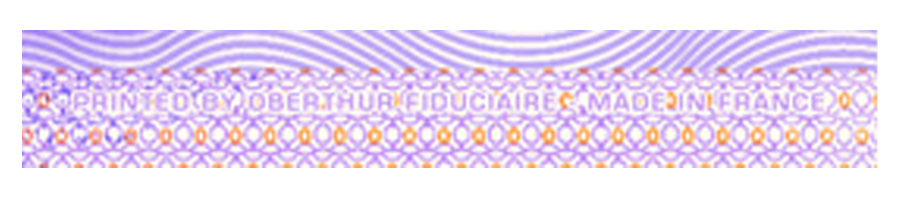 In addition to visible security features, Euro Souvenir banknotes also contain those that are not visible at first glance. To view some of these security features it is necessary to look at the Euro Souvenir under a UV lamp. In this view, it is possible to see some elements highlighted.